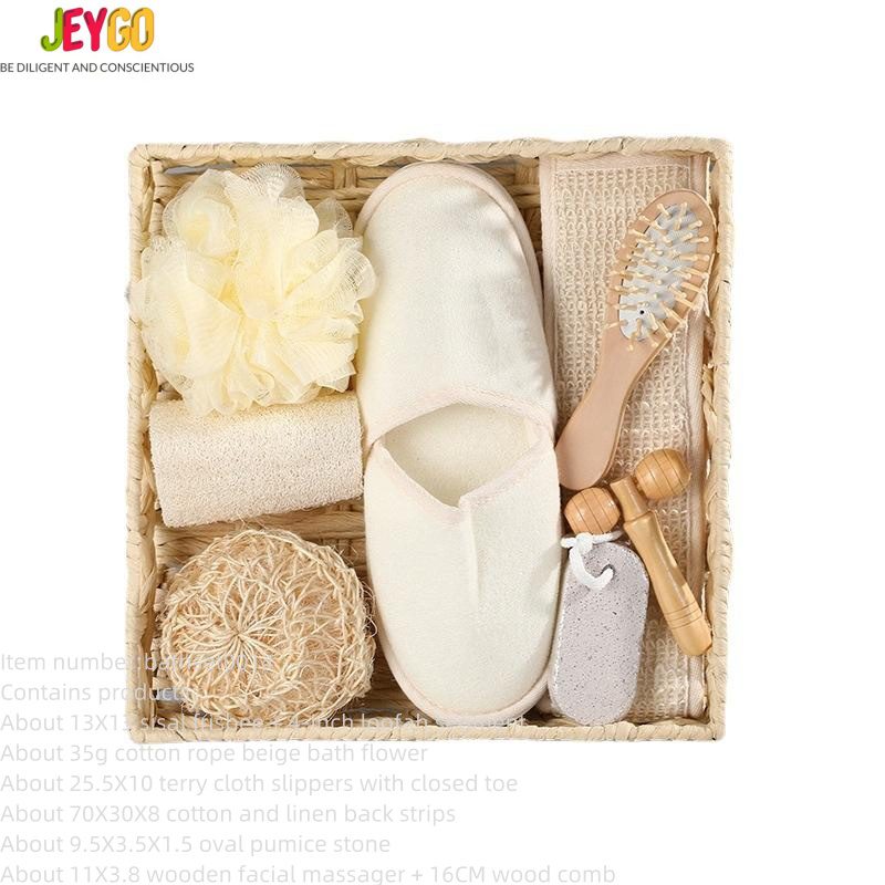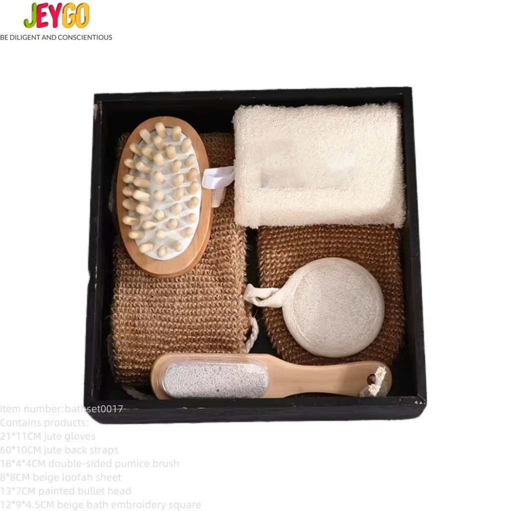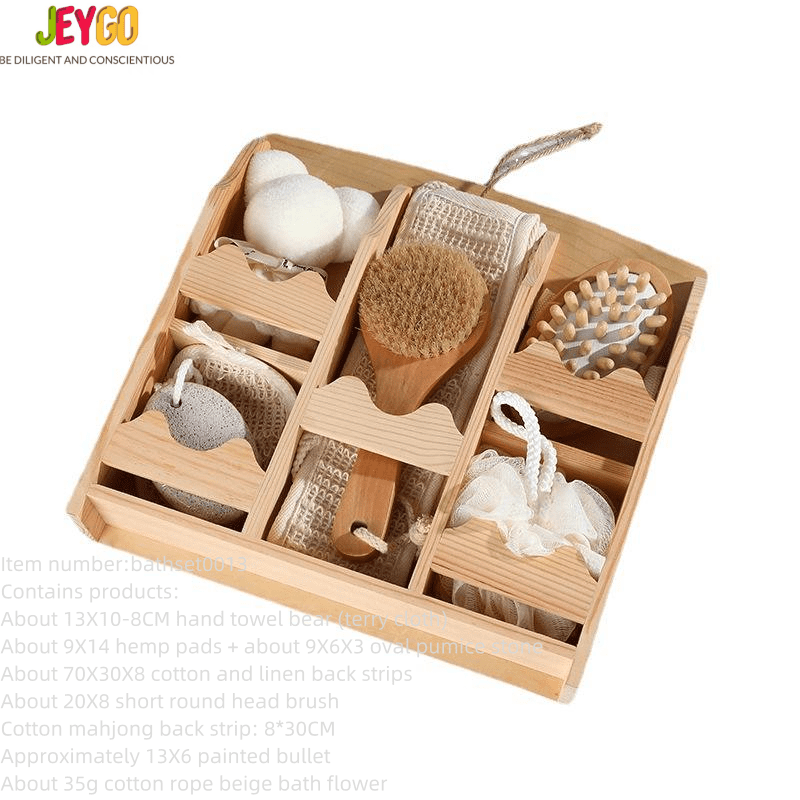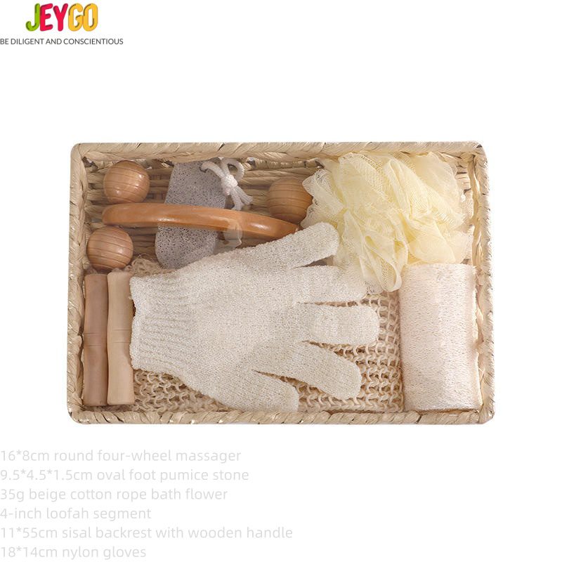 Wholesale Customized logo Rectangular Basket Grindstone Wooden Handle Sisal Pull Back Strip Six-piece Set