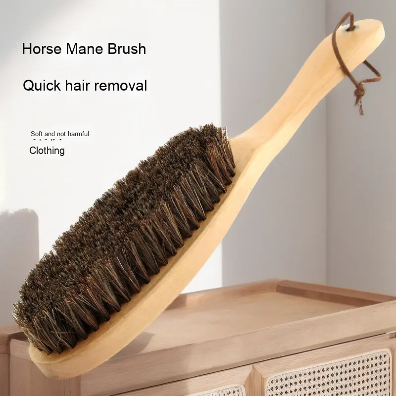 Newly designed wooden handle 100% horsehair cleaning brush with all-natural bristles for clothes, hats, and bedding.