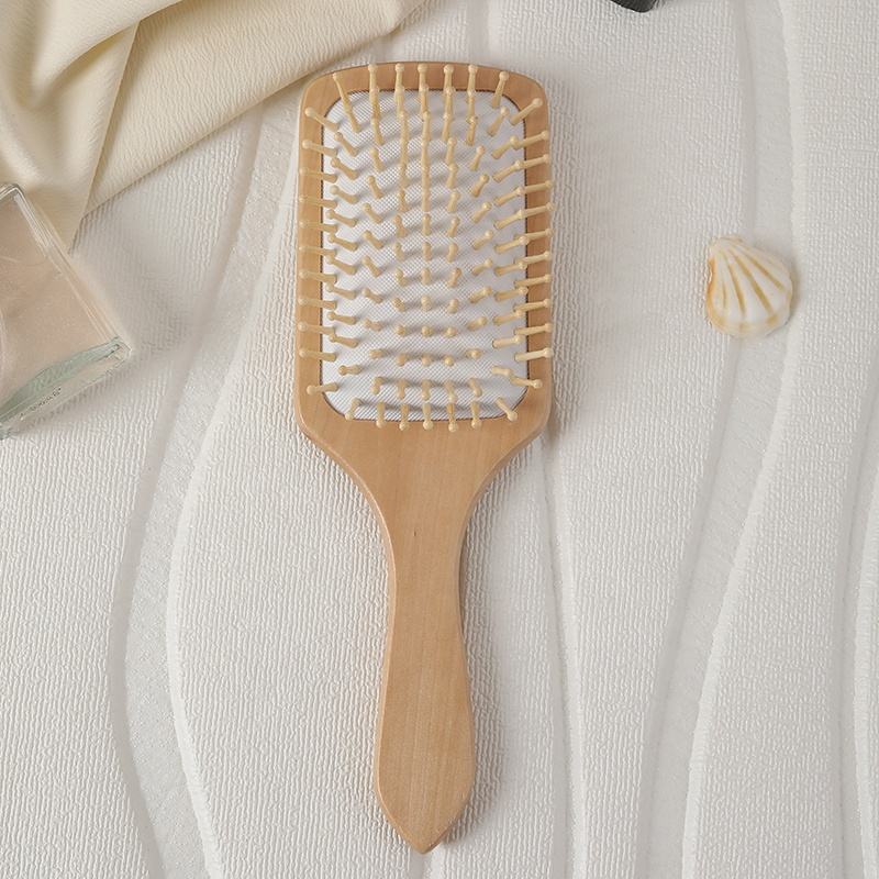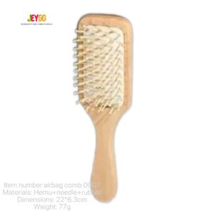 This massage comb is designed for daily grooming and light scalp stimulation, combining natural materials with practical structure. The wooden handle offers a smooth, comfortable grip, while the flexible air cushion base helps reduce pulling during brushing. Integrated wooden pins provide even contact across the scalp, supporting relaxed use at home or in professional settings. Developed within standardized personal care product manufacturing processes, this comb is suitable for consistent quality supply and long-term distribution.