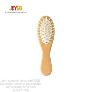 Designed specifically for infants and toddlers, this baby hair brush combines a smooth wooden handle with soft rounded pins to provide a comfortable and calming grooming experience. The compact size is ideal for small hands and delicate scalps, helping parents care for their baby’s hair gently and safely during daily routines. Made with natural materials and a simple structure, it is well suited for family use as well as inclusion in baby care gift sets.