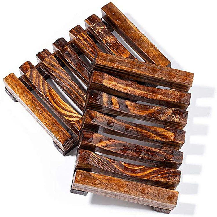 Carbonized wood and bamboo soap dish, used as a soap holder for bathroom sinks and showers, available in bulk small wooden soap dishes.