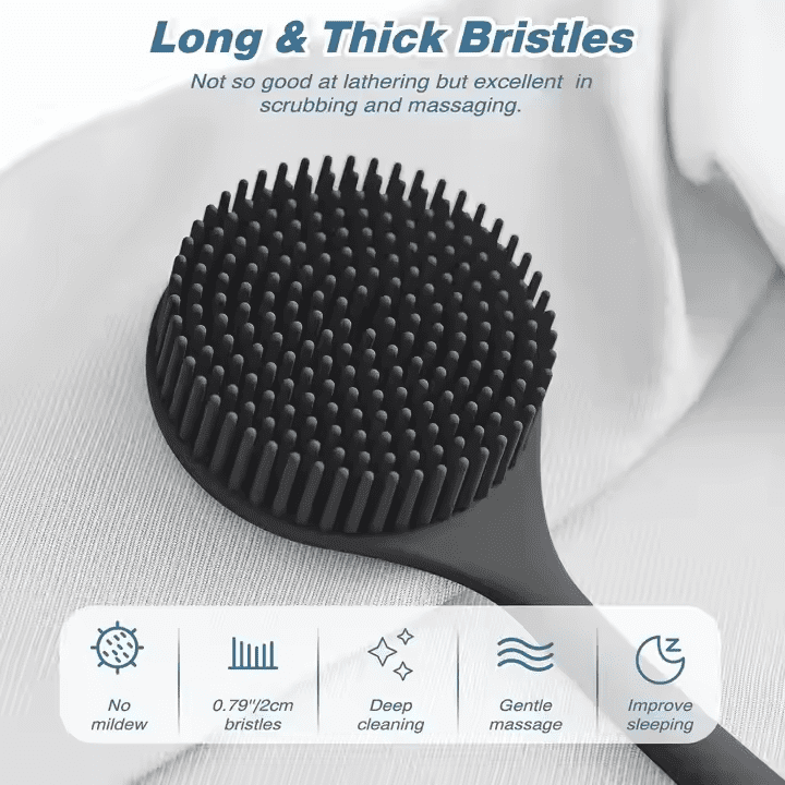 Bath Brush With Long Handle – Silicone Body Brush for Shower Cleaning