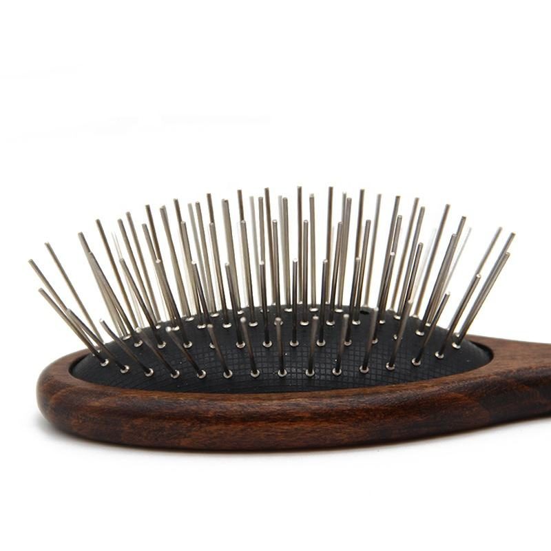 This dog grooming brush is designed to support comfortable and efficient coat maintenance during regular grooming routines. Featuring a solid wooden handle and a cushioned brushing surface, it allows smooth contact with the coat while helping manage loose hair and light tangles without excessive pulling.