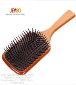 Our wooden combs from JEYGO are designed for comfortable daily grooming and long-term use in both personal care and professional environments. Crafted with a solid beech wood handle and a flexible cushioned base, this brush offers a balanced combination of durability and gentle performance. The elastic rubber pad adapts naturally to the scalp, helping reduce tension while brushing and supporting smoother hair management. As a comb massager, it provides a relaxing brushing experience without harsh pulling, making it suitable for different hair types.