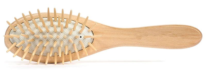 • Rounded wooden pins for gentle scalp contact