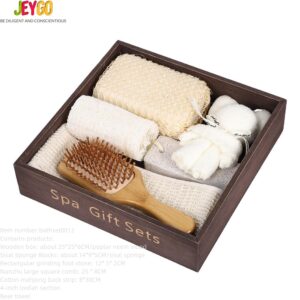 Contains Products: Wooden box, bath sponge, loofah, back scrub strip, foot grinding stone, hair or massage brush, towel accessory