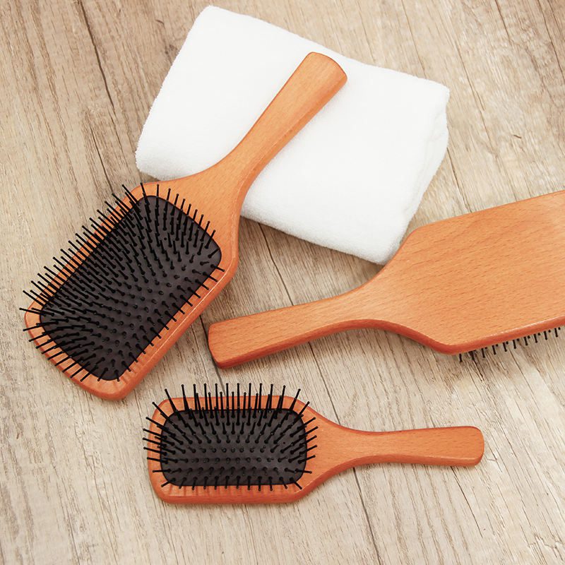 This detangling brush for hair is designed for smooth daily grooming while maintaining a balanced feel and reliable structure. Crafted with a solid wooden handle and a flexible cushion base, it allows hair to glide through the bristles with reduced pulling and breakage. The ergonomic shape supports comfortable handling, making it suitable for both personal care routines and professional salon environments.