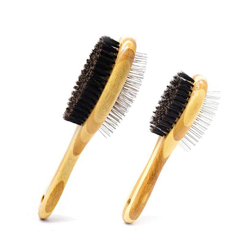 Dual-Sided Bamboo Handle Pet Grooming Brush