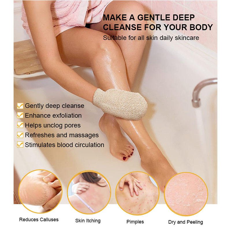 This exfoliate glove is made from natural flax, providing a highly effective scrub for your skin. Perfect for daily use, these scrub gloves help remove dead skin and impurities, leaving your skin smooth and refreshed. The glove design makes it easy to reach difficult areas, particularly for use as a back scrubber, ensuring thorough exfoliation all over the body.
