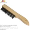 As a stainless steel wire brush w/ wood handle, this model combines traditional materials with functional design. The wooden grip helps reduce hand fatigue during extended operation, making it suitable for workshops, maintenance facilities, and industrial cleaning tasks.