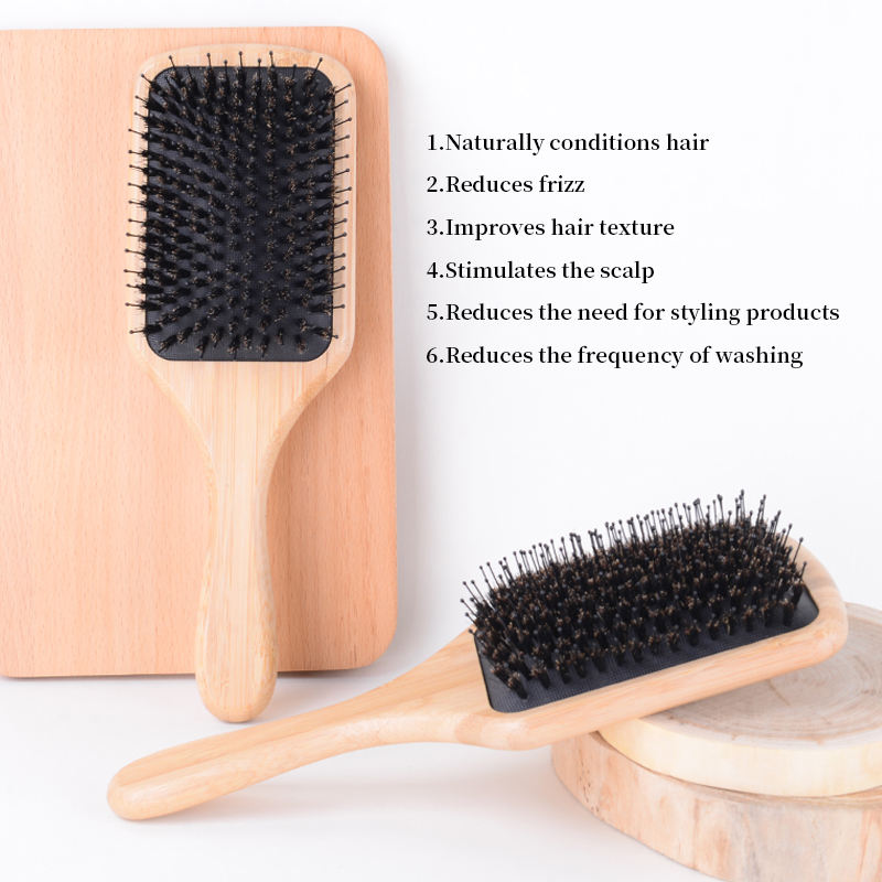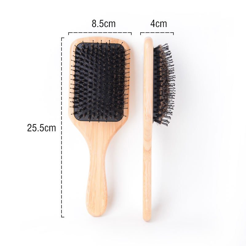 This bamboo paddle hair brush is designed for users who value both comfort and material authenticity in daily grooming tools. Crafted with a smooth wooden handle and a cushioned brush base, it delivers balanced pressure distribution during use, making it suitable as a head massage tool for routine scalp care. The combination of natural bamboo and a flexible rubber pad helps reduce pulling while supporting gentle detangling and relaxation. this brush reflects stable production standards and consistent quality control. The overall structure and material testing are supported by brush research manufacturing, ensuring durability and performance for long-term use.