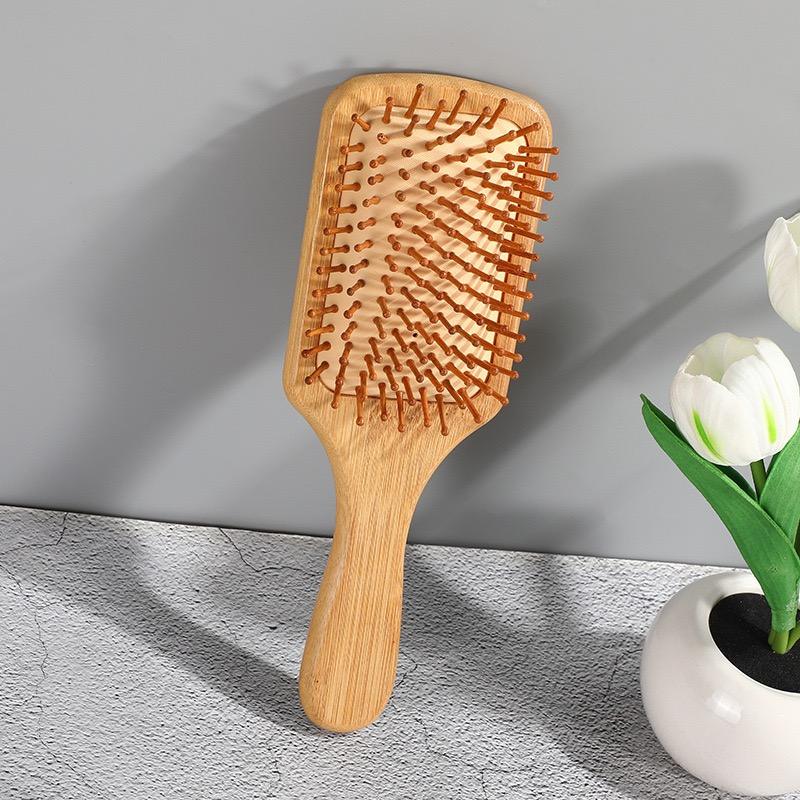 These carefully crafted bamboo hair brushes are designed to support comfortable and consistent daily grooming routines. Made from solid bamboo wood with smooth rounded pins, the brush works effectively as a scalp massager comb, offering gentle contact that helps relax the scalp during regular brushing. The balanced structure allows smooth detangling while maintaining a natural feel, making it suitable for everyday personal care use.