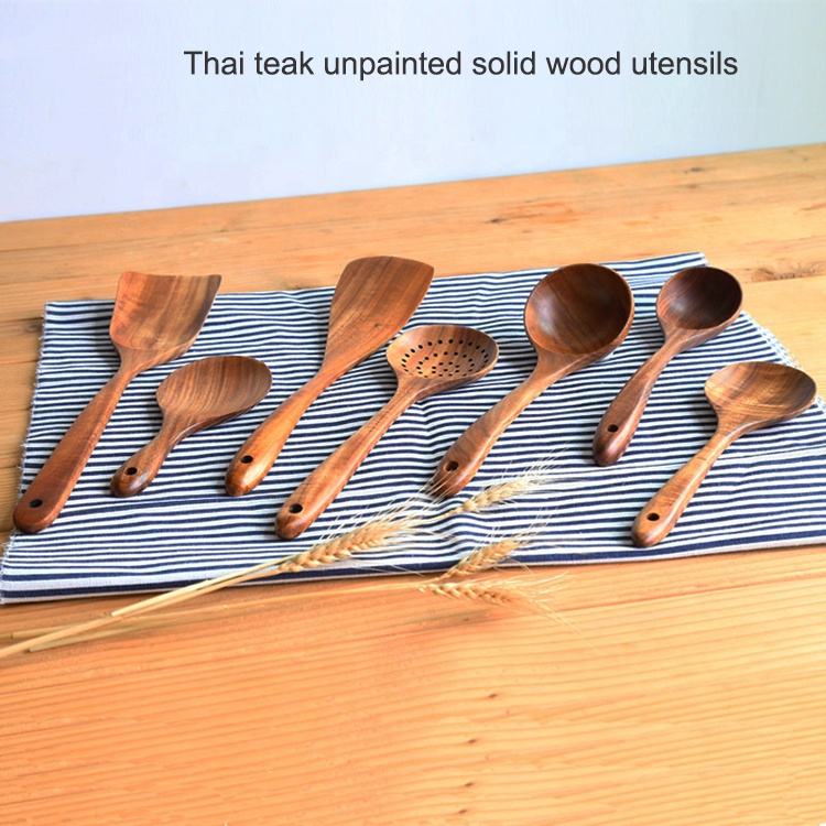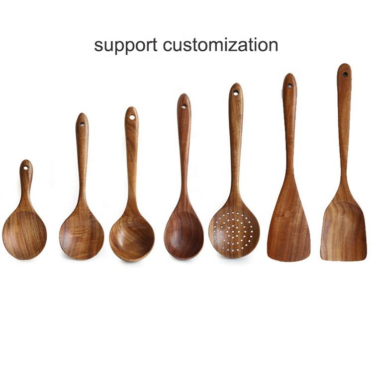 Wooden kitchen utensil set: wooden spoons, spatulas, and ladles (7 pieces of wooden cookware)